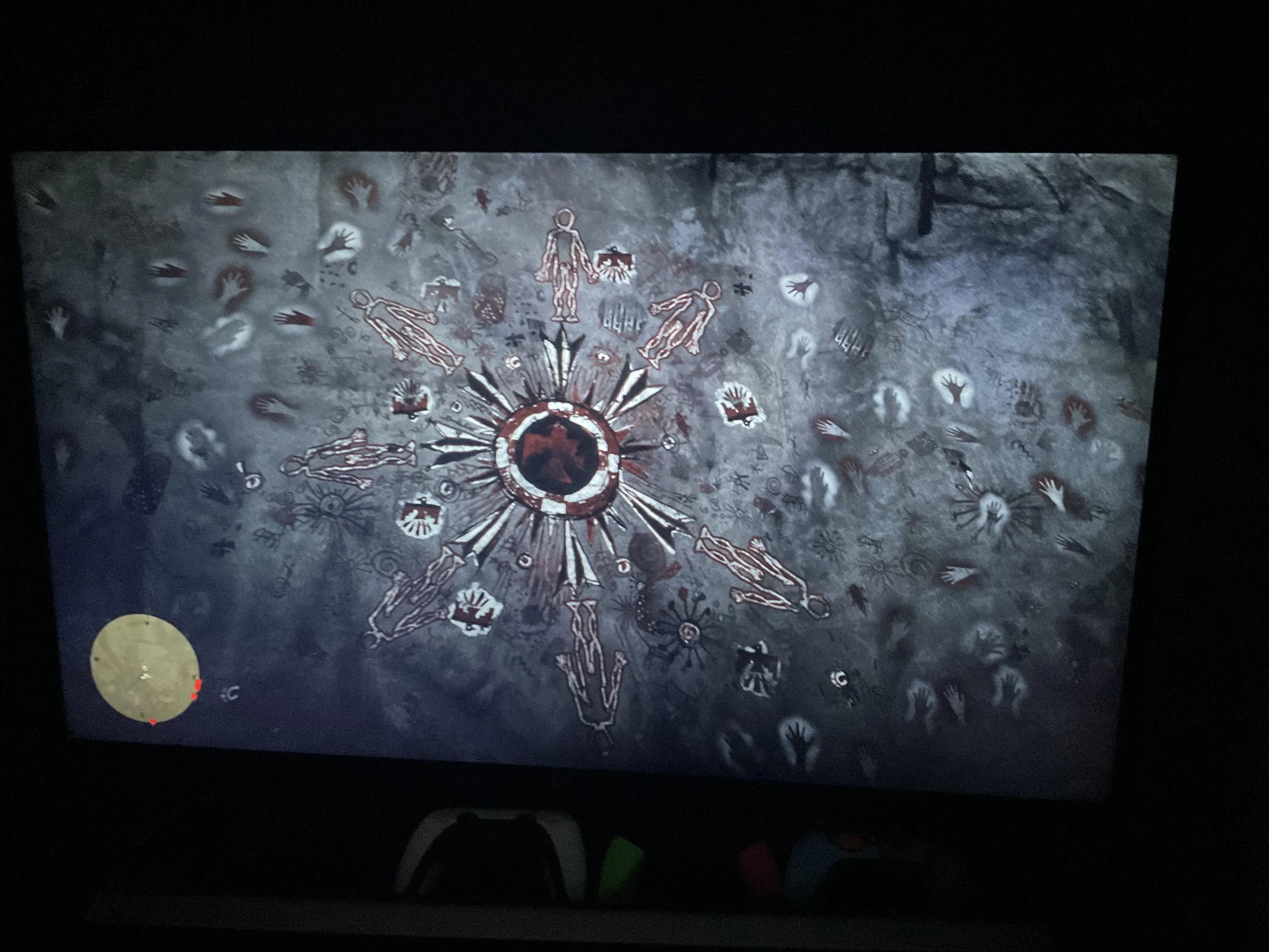 Птицы ведут к старой пасхалке. Через бинокль с противоположной стороны — огромный «?» на скале (out of bounds, моды нужны). Путь формирует перевёрнутый «?» , точка — колодец в Eris Field с резьбой: 3 столба, солнце, 3 облака/камня.